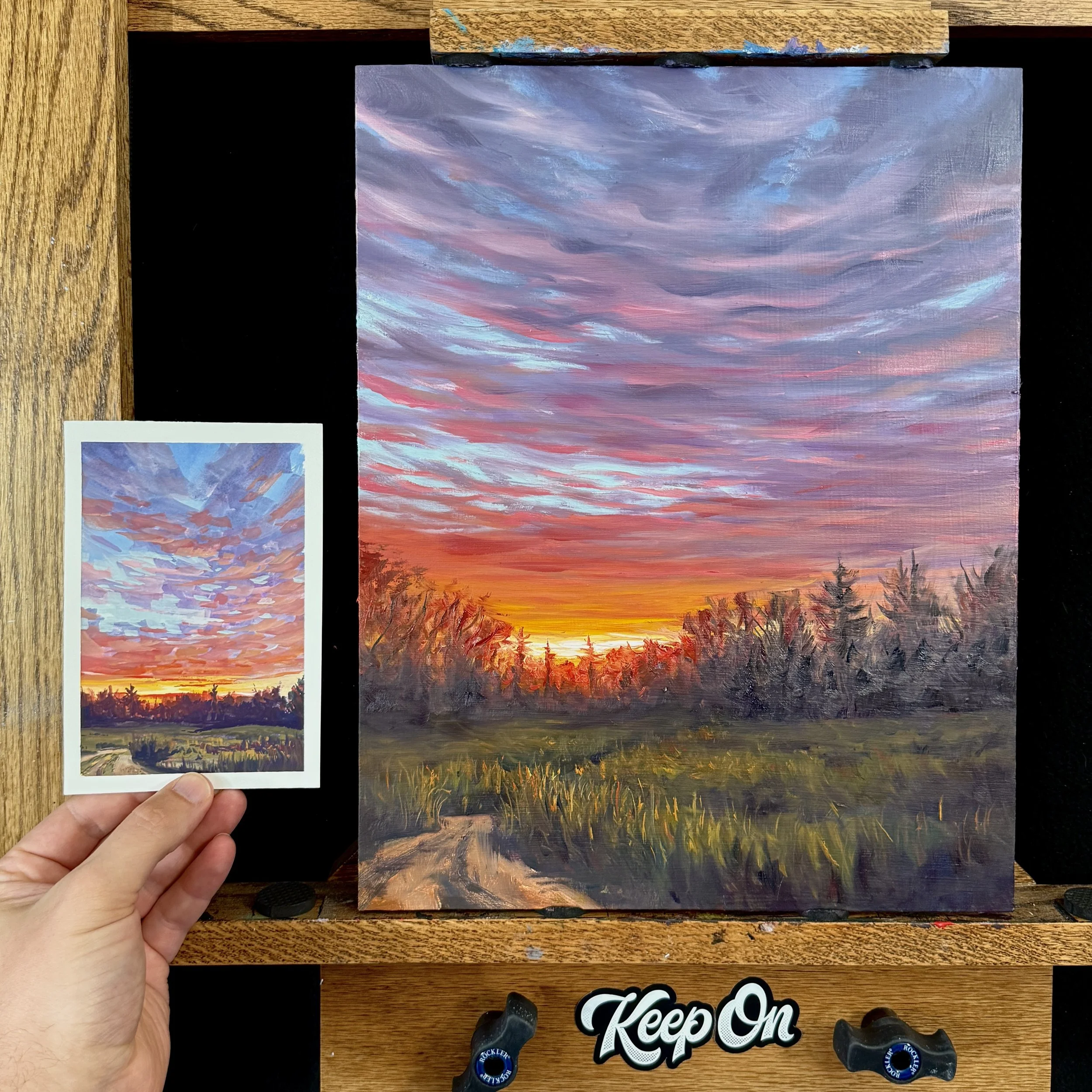 Not all of these little pieces end up working, but the ones that sing? Those are the ones I’ll consider graduating to a larger big brother oil painting. Oils are where I can slow down and become more deliberate. They force calm reflection, I can push depth more, and I can really start to say what I want to say with paint.